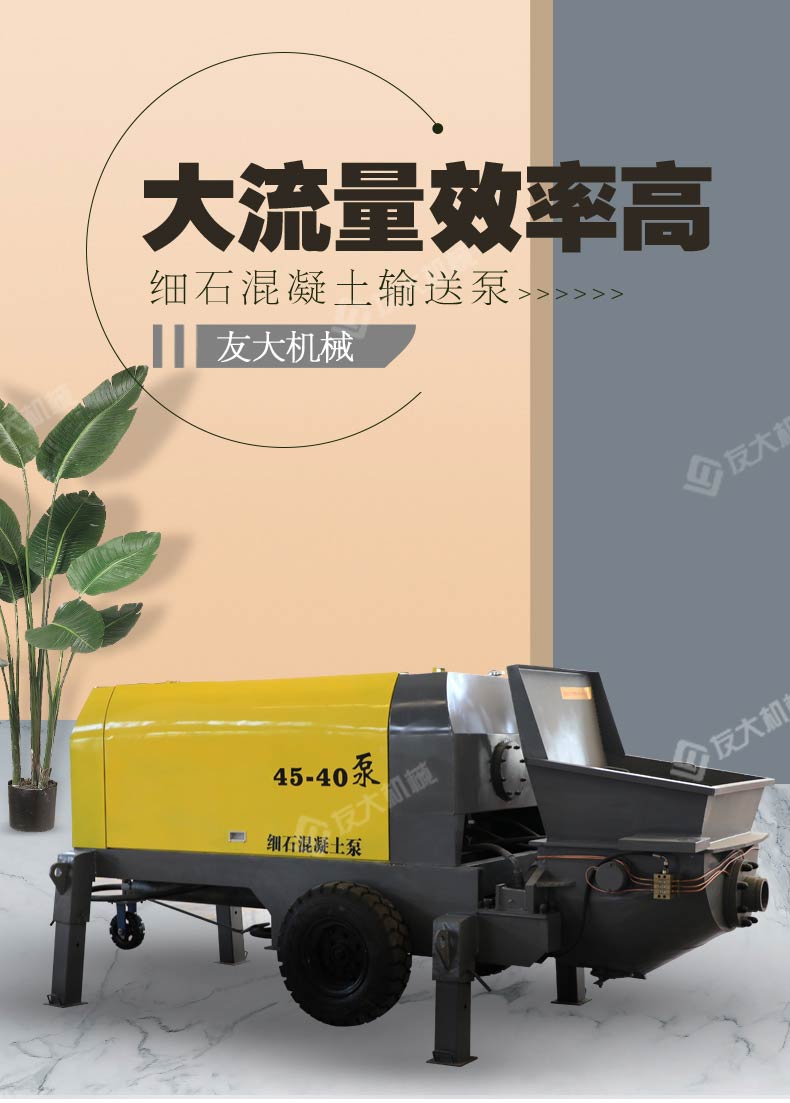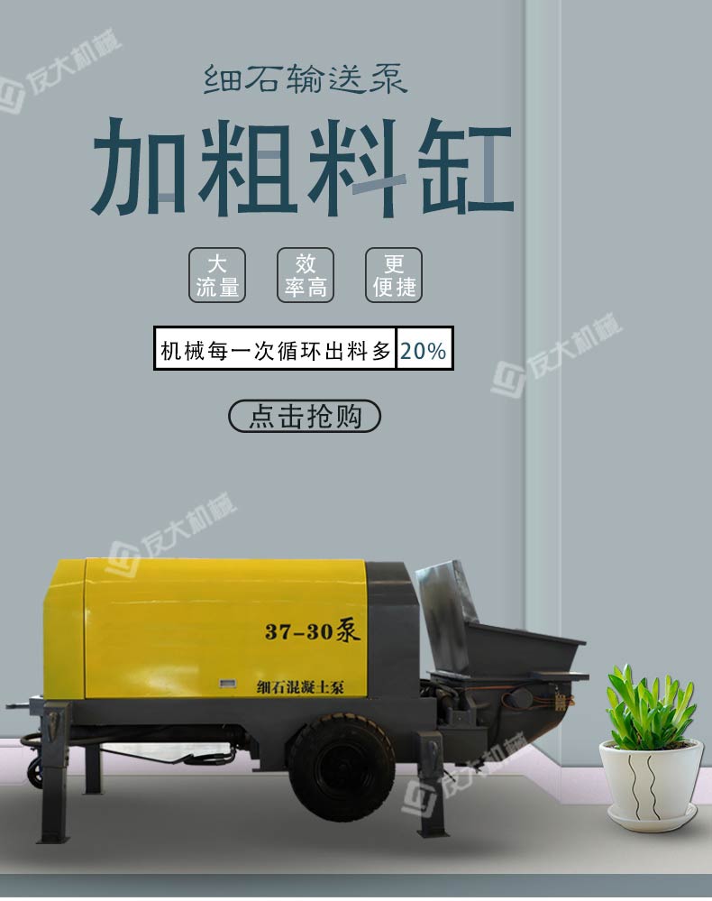 细石混凝土输送泵用于混凝土施工中的输送和浇注工作。应用范围主要是应用在坡道灌浆、水平地面、隧道浇筑。模板灌浆等。...